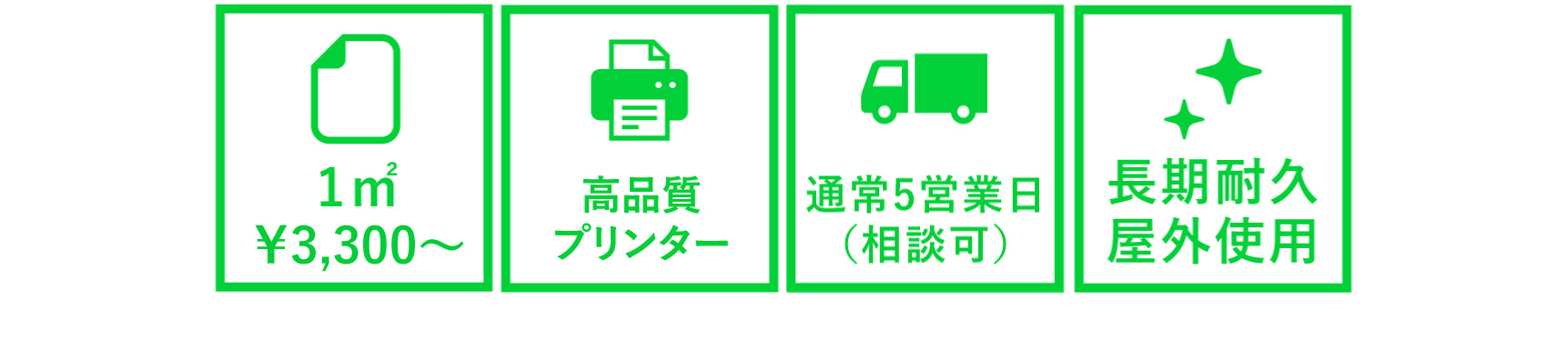 | インクについて | 溶剤インクは、染料を水でなく有機溶剤で溶かしています。耐候性・耐水性・耐光性に優れているため、長期間使用する印刷物に適しています。 |